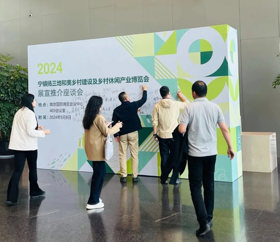 为进一步助推宜居宜业和美乡村建设,交流经验、破解难题,为和美乡村建设注入发展动能,为9月20日举办的第二届乡村休闲产业博览会预热,5月8日,宁镇扬三地和美乡村建设及乡村休闲产业博览会展宣推介座谈会在南京国际博览会议中心举办。省市有关职能部门领导和专家出席了座谈会。田园东方创始人张诚、江苏省休闲旅游农业协会会长王冬宝、国际设计科学学会(美国)上海代表处负责人周之澄、南京大学南京创意农业研究院副院长庄桐、南京河西会议展览有限责任公司(南京国际博览中心)总经理周忠胜、中国国旅(江苏)国际旅行社有限公司总经理助理王宁、南京亚东展览服务有限公司总经理宋青青、中国国际营地教育研究院执行院长周坚及三地30余家美丽乡村书记代表、园林行业专家代表、文旅行业专家代表出席了本次会议。
