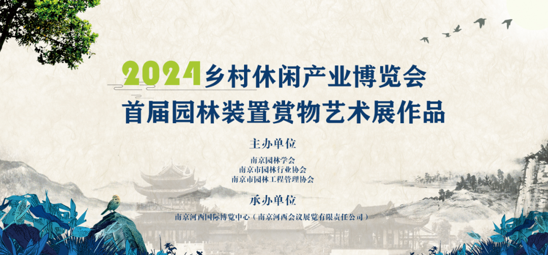 为不断提升南京园林的品牌影响力,拓宽园林行业发展空间,助力乡村振兴事业,满足人民美好生活需求,由南京园林学会、南京市园林行业协会、南京市园林工程管理协会主办,南京河西国际博览中心承办的2024乡村休闲产业博览会之首届园林装置赏物艺术展,自2024年6月起,面向全体会员单位及园林规划设计、施工和维护单位、高校园林园艺类专业师生、艺术装饰装置厂家公开征集园林装置艺术作品参展。征集的作品将于2024乡村休闲产业博览会(9月20-23日)上“城乡生活艺术展区”展出,并可公开售卖,现将有关事项通知如下: