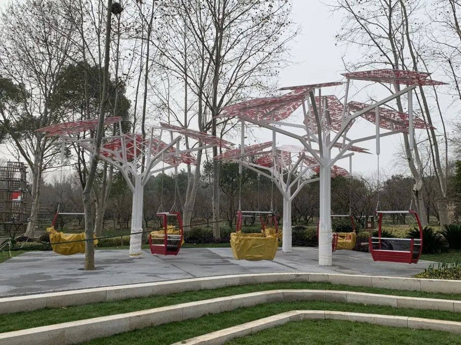 穿越钟山林海的紫金山索道降落梅花谷与春色共赴一场花的盛宴谷间林木郁葱,恍若置身一片黛绿色的海洋,树状座椅与山梅遍野融为一体,共你游曳于林海之间。索道整体呈三角状 增添稳固之趣。