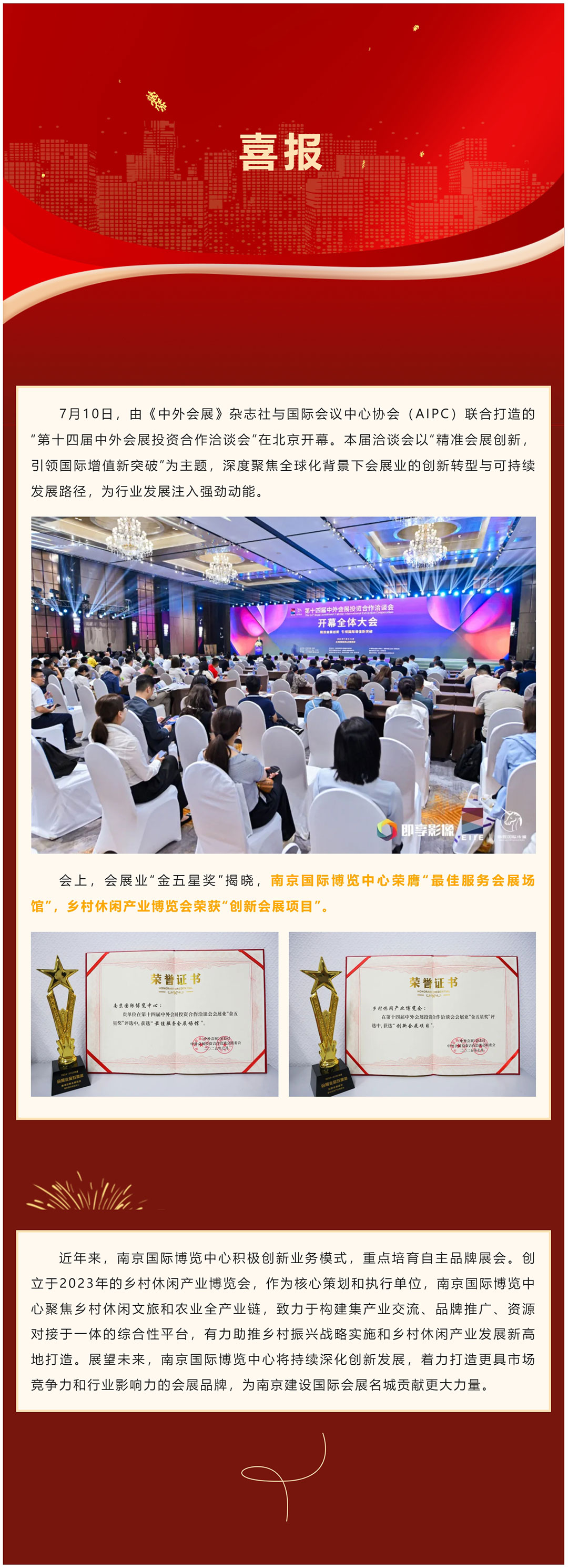 荣耀时刻 | 南京国际博览中心、乡村休闲产业博览会双双斩获行业大奖