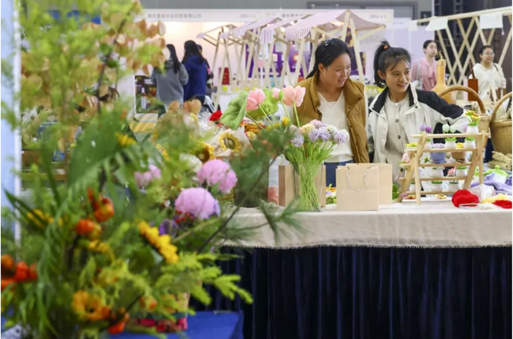 沉浸式体验拉近距离:“乡村美学”落地成为展会亮点之一,南京润鹏生态园林微景观、寻竹品牌“竹栖秘境”竹编装置(联合南师美院打造)引市民驻足;南京艺术学院国际教育学院印尼文化摊位注入国际视角;非遗手工体验、打卡集章、互动抽奖及“一村一味”乡野美食节(配套直播带货培训),让市民深度感受乡村文化,拉近城乡情感距离。